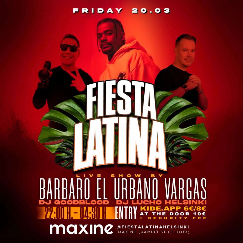 Helsinki, get ready for a night of pure Latin heat! Fiesta Latina takes over Maxine with an explosive Latin hip-hop show by Barbaro el Urbano 🇨🇺 you don’t wanna miss!
