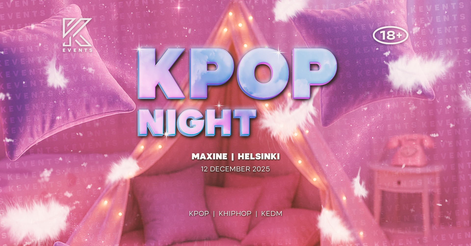 OfficialKEvents on maailman suurin KPop ja KHiphop Clubbing Events -järjestäjä. Lontoon ja Pariisin klubi-iltamme tuovat yli 2000 osallistujaa kuukausittain, ja niitä järjestetään yli 25 maassa. Olemme nyt palanneet tuomaan sinulle uuden unohtumattoman illan, pelaamalla VAIN K-Popia & KHipHopia koko yön!