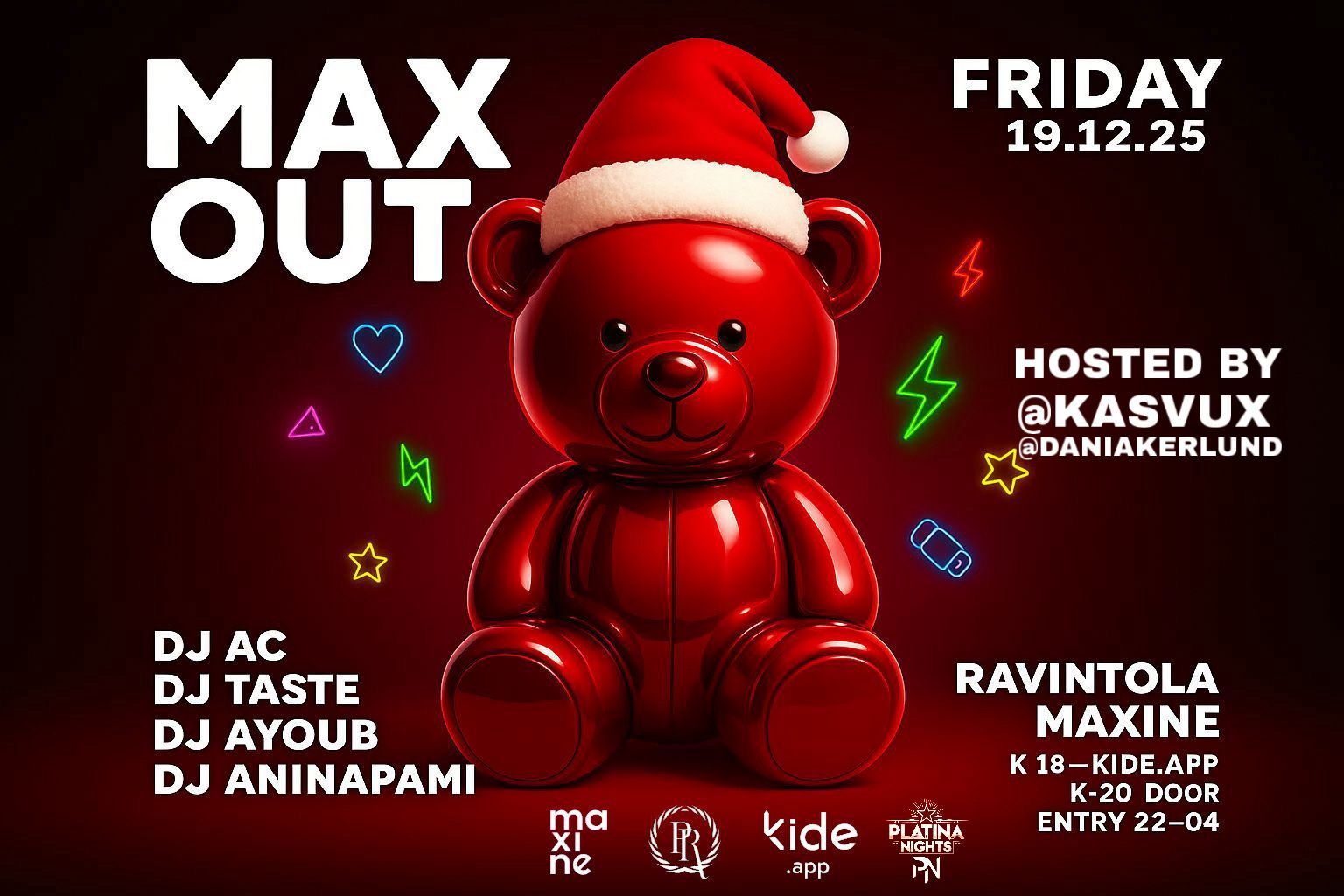 MAXOUT – MAXINE PIKKUJOULUT! 🎄🎅🏻 19.12.2025 • 22:00–04:00